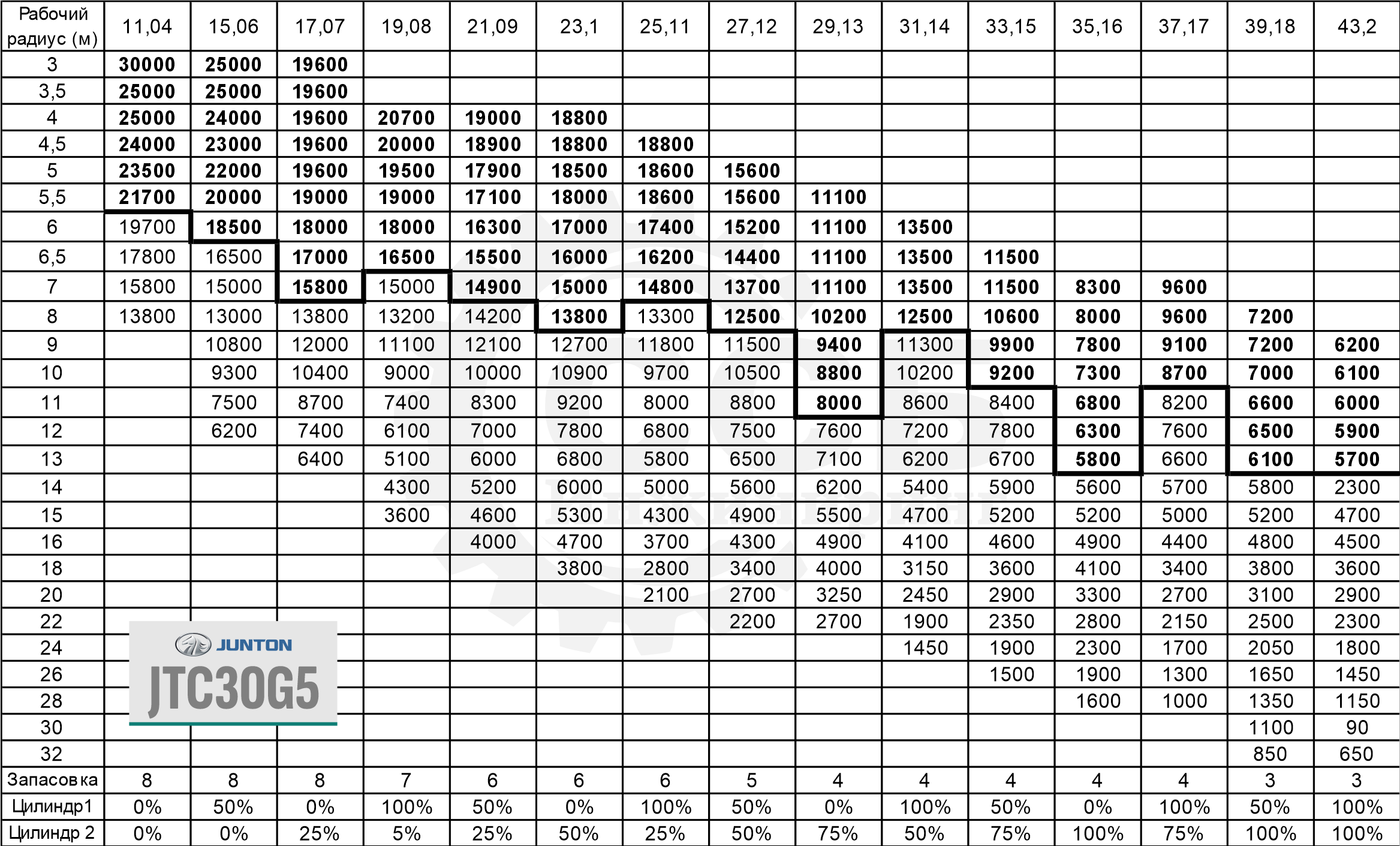 - Электронный сенсорный дисплей отображает текущую информацию о работе крана на русском языке: угол подъема и вылет стрелы, высота подъема и масса груза, грузовой момент, максимальная грузоподъемность.